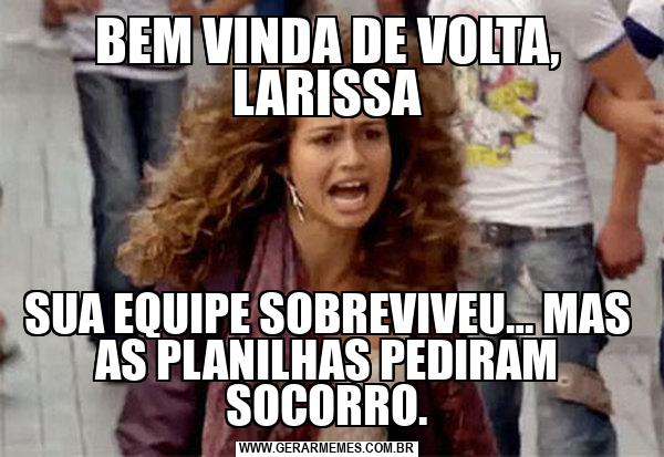 BEM VINDA DE VOLTA, LARISSA SUA EQUIPE SOBREVIVEU… MAS AS PLANILHAS PEDIRAM SOCORRO.