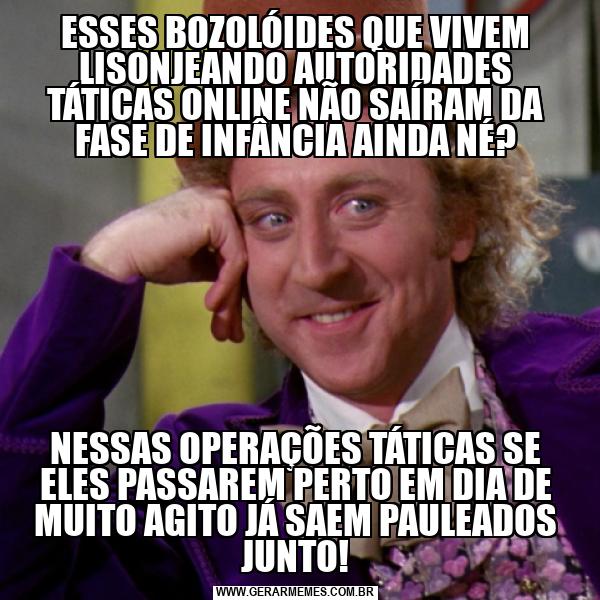 ESSES BOZOLÓIDES QUE VIVEM LISONJEANDO AUTORIDADES TÁTICAS ONLINE NÃO SAÍRAM DA FASE DE INFÂNCIA AINDA NÉ? NESSAS OPERAÇÕES TÁTICAS SE ELES PASSAREM PERTO EM DIA DE MUITO AGITO JÁ SAEM PAULEADOS JUNTO!