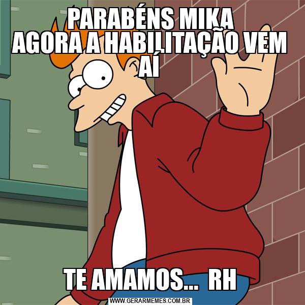 PARABÉNS MIKA AGORA A HABILITAÇÃO VEM AÍ TE AMAMOS... RH