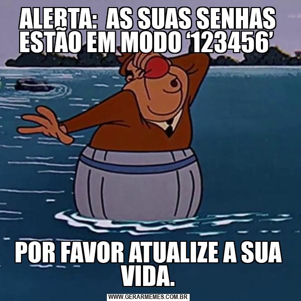 ALERTA: AS SUAS SENHAS ESTÃO EM MODO ‘123456’ POR FAVOR ATUALIZE A SUA VIDA.