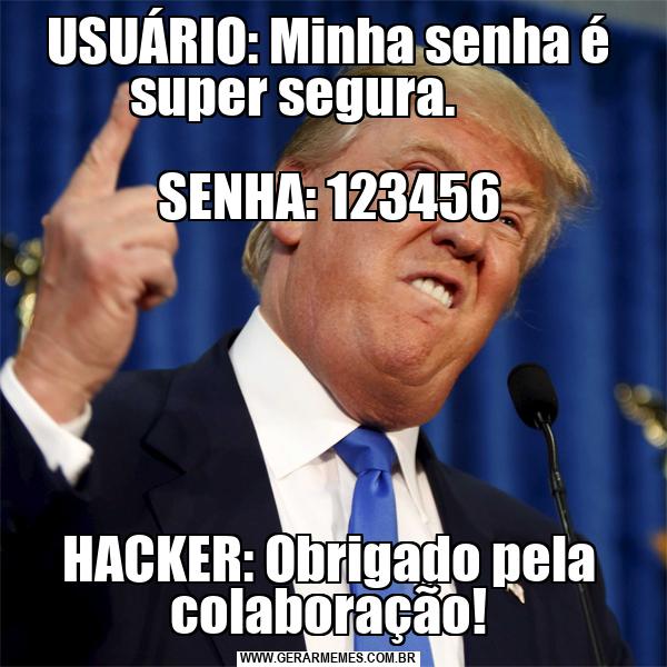 USUÁRIO: Minha senha é super segura. SENHA: 123456 HACKER: Obrigado pela colaboração!