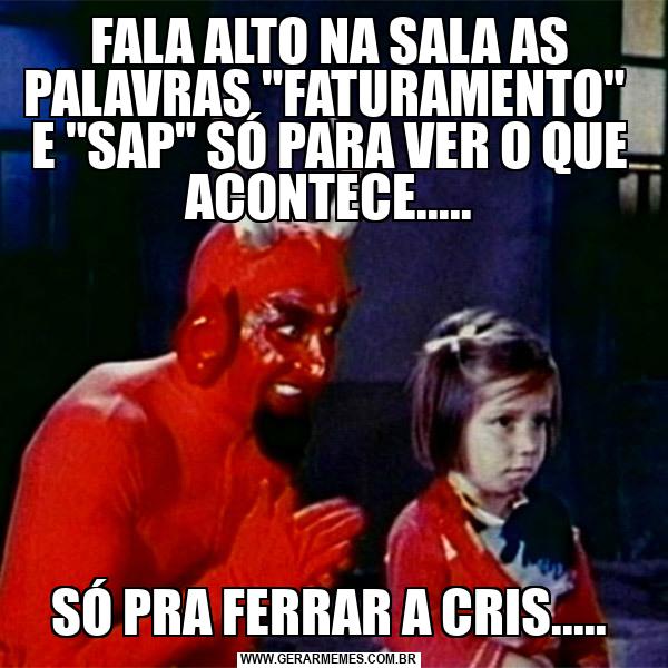 FALA ALTO NA SALA AS PALAVRAS "FATURAMENTO" E "SAP" SÓ PARA VER O QUE ACONTECE..... SÓ PRA FERRAR A CRIS.....