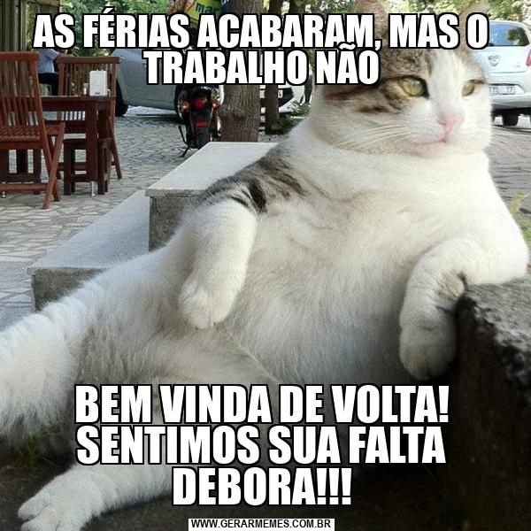 AS FÉRIAS ACABARAM, MAS O TRABALHO NÃO BEM VINDA DE VOLTA! SENTIMOS SUA FALTA DEBORA!!!
