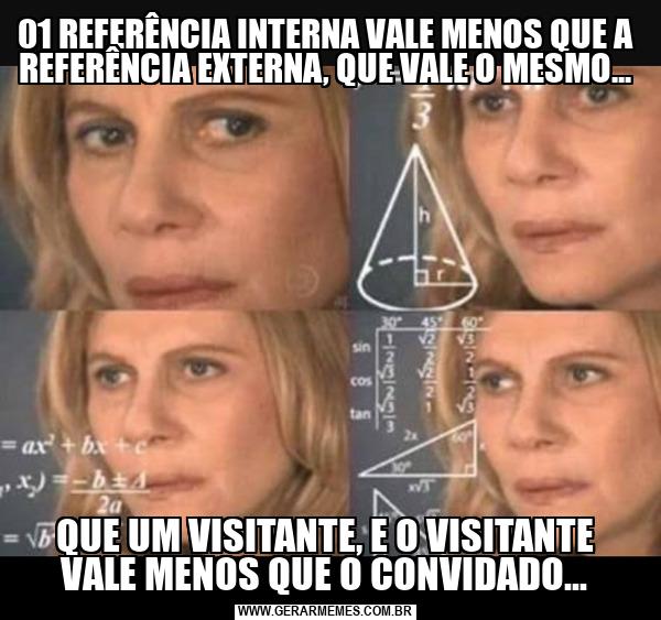 01 REFERÊNCIA INTERNA VALE MENOS QUE A REFERÊNCIA EXTERNA, QUE VALE O MESMO... QUE UM VISITANTE, E O VISITANTE VALE MENOS QUE O CONVIDADO...