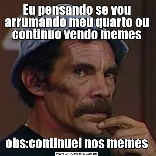 Eu pensando se vou arrumando meu quarto ou continuo vendo memes obs:continuei nos memes