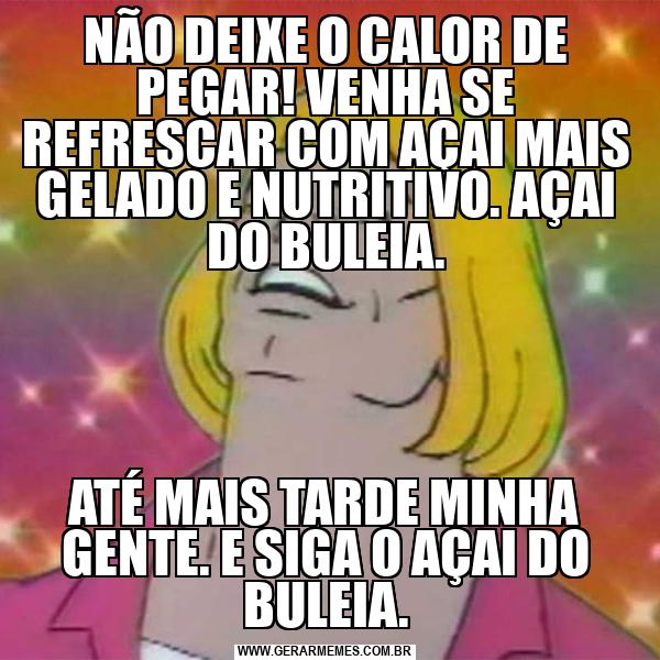 NÃO DEIXE O CALOR DE PEGAR! VENHA SE REFRESCAR COM AÇAI MAIS GELADO E NUTRITIVO. AÇAI DO BULEIA. ATÉ MAIS TARDE MINHA GENTE. E SIGA O AÇAI DO BULEIA.
