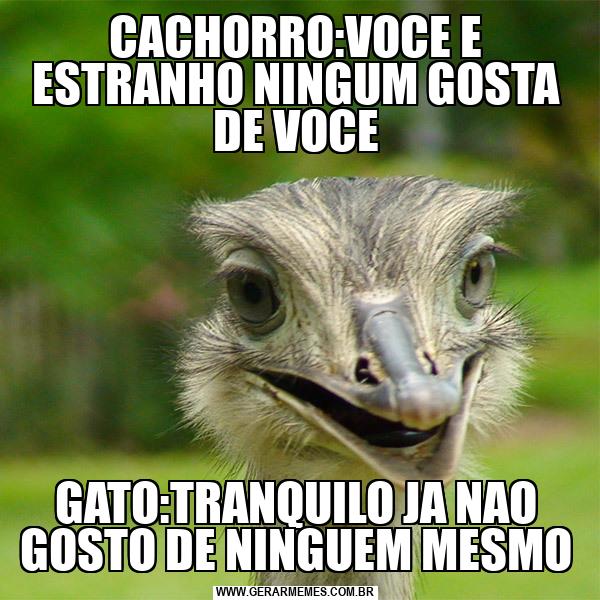 CACHORRO:VOCE E ESTRANHO NINGUM GOSTA DE VOCE GATO:TRANQUILO JA NAO GOSTO DE NINGUEM MESMO