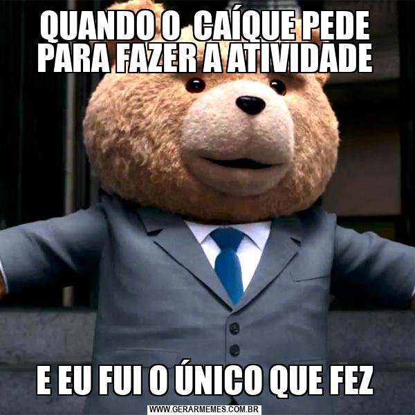 QUANDO O CAÍQUE PEDE PARA FAZER A ATIVIDADE E EU FUI O ÚNICO QUE FEZ