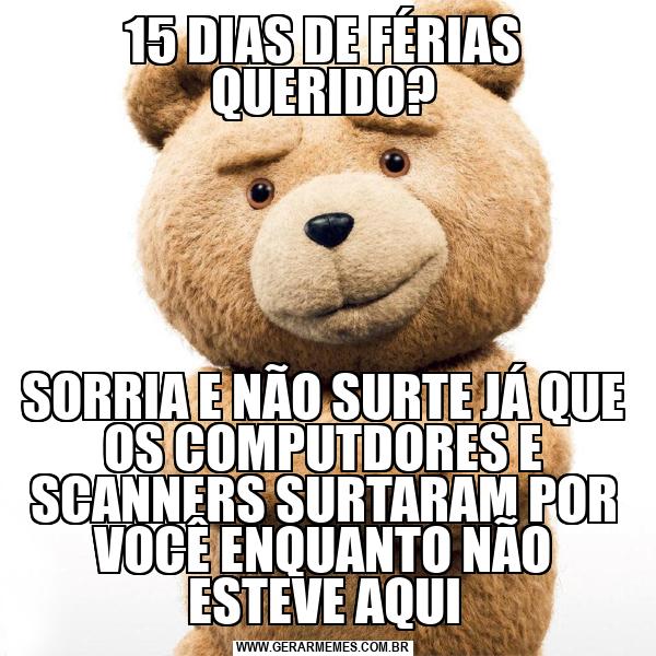 15 DIAS DE FÉRIAS QUERIDO? SORRIA E NÃO SURTE JÁ QUE OS COMPUTDORES E SCANNERS SURTARAM POR VOCÊ ENQUANTO NÃO ESTEVE AQUI