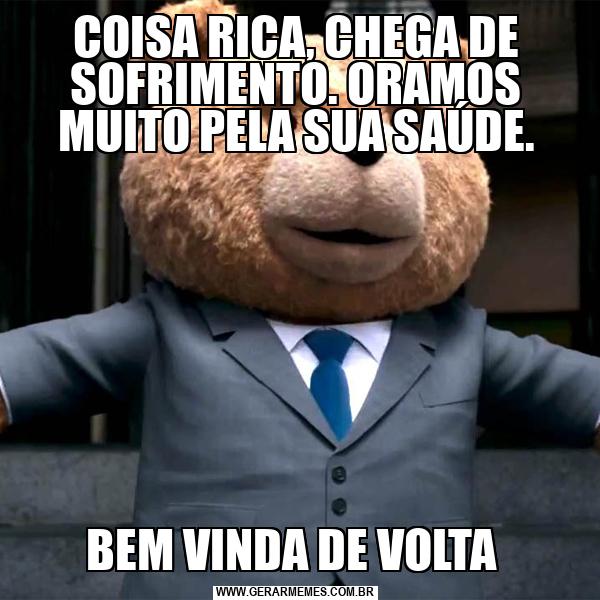 COISA RICA, CHEGA DE SOFRIMENTO. ORAMOS MUITO PELA SUA SAÚDE. BEM VINDA DE VOLTA