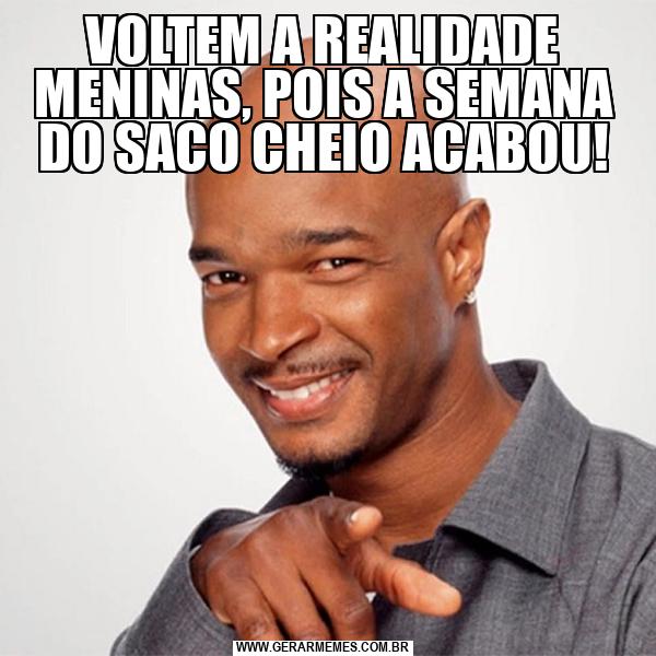 VOLTEM A REALIDADE MENINAS, POIS A SEMANA DO SACO CHEIO ACABOU!