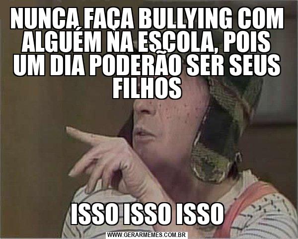 NUNCA FAÇA BULLYING COM ALGUÉM NA ESCOLA, POIS UM DIA PODERÃO SER SEUS FILHOS ISSO ISSO ISSO