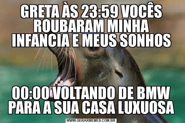 GRETA ÀS 23:59 VOCÊS ROUBARAM MINHA INFANCIA E MEUS SONHOS 00:00 VOLTANDO DE BMW PARA A SUA CASA LUXUOSA