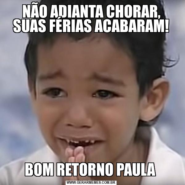 NÃO ADIANTA CHORAR, SUAS FÉRIAS ACABARAM! BOM RETORNO PAULA