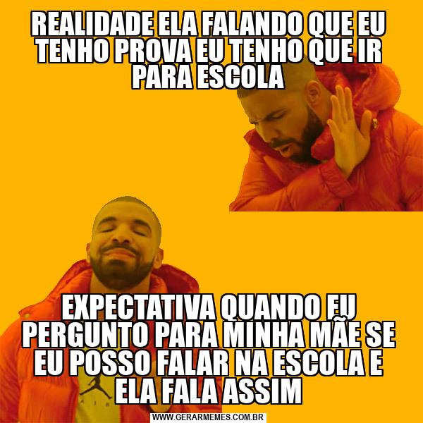 REALIDADE ELA FALANDO QUE EU TENHO PROVA EU TENHO QUE IR PARA ESCOLA EXPECTATIVA QUANDO EU PERGUNTO PARA MINHA MÃE SE EU POSSO FALAR NA ESCOLA E ELA FALA ASSIM
