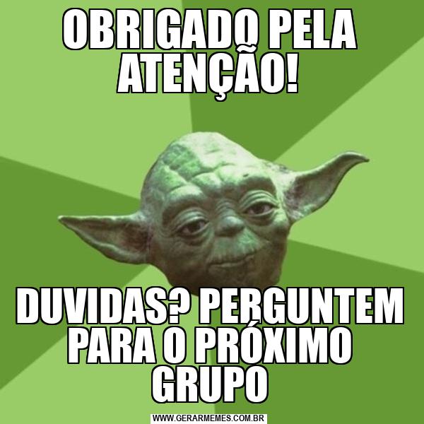 OBRIGADO PELA ATENÇÃO! DUVIDAS? PERGUNTEM PARA O PRÓXIMO GRUPO