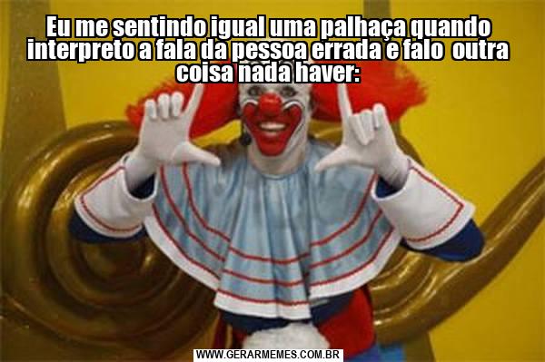 Eu me sentindo igual uma palhaça quando interpreto a fala da pessoa errada e falo outra coisa nada haver: