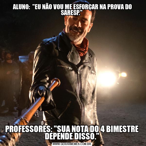 ALUNO: "EU NÃO VOU ME ESFORÇAR NA PROVA DO SARESP." PROFESSORES: "SUA NOTA DO 4 BIMESTRE DEPENDE DISSO."