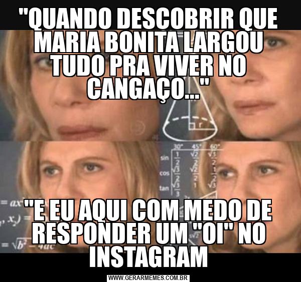 "QUANDO DESCOBRIR QUE MARIA BONITA LARGOU TUDO PRA VIVER NO CANGAÇO..." "E EU AQUI COM MEDO DE RESPONDER UM "OI" NO INSTAGRAM