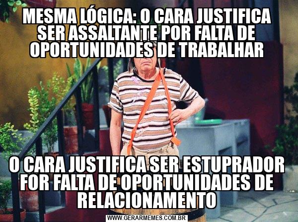 MESMA LÓGICA: O CARA JUSTIFICA SER ASSALTANTE POR FALTA DE OPORTUNIDADES DE TRABALHAR O CARA JUSTIFICA SER ESTUPRADOR FOR FALTA DE OPORTUNIDADES DE RELACIONAMENTO