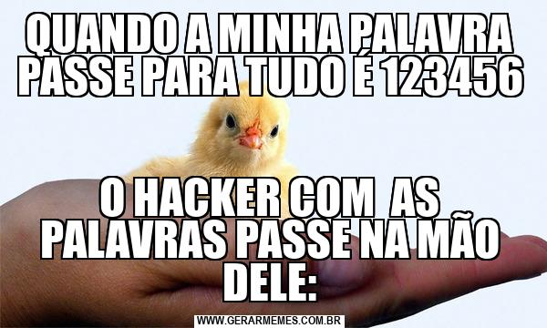 QUANDO A MINHA PALAVRA PASSE PARA TUDO É 123456 O HACKER COM AS PALAVRAS PASSE NA MÃO DELE: