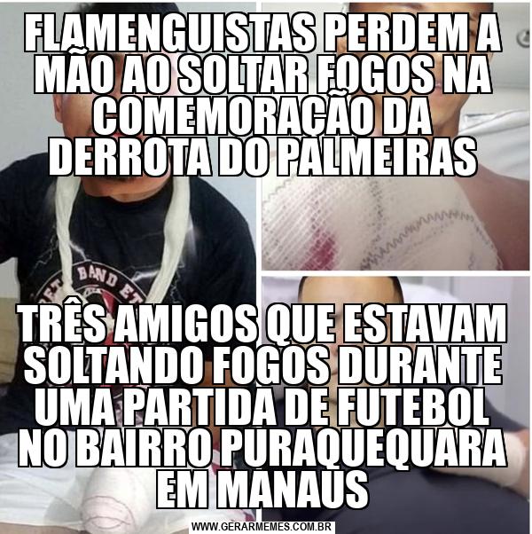 FLAMENGUISTAS PERDEM A MÃO AO SOLTAR FOGOS NA COMEMORAÇÃO DA DERROTA DO PALMEIRAS TRÊS AMIGOS QUE ESTAVAM SOLTANDO FOGOS DURANTE UMA PARTIDA DE FUTEBOL NO BAIRRO PURAQUEQUARA EM MANAUS
