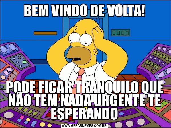BEM VINDO DE VOLTA! PODE FICAR TRANQUILO QUE NÃO TEM NADA URGENTE TE ESPERANDO