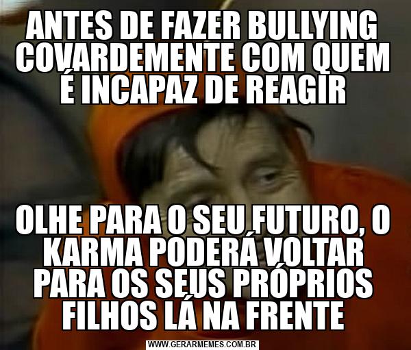 ANTES DE FAZER BULLYING COVARDEMENTE COM QUEM É INCAPAZ DE REAGIR OLHE PARA O SEU FUTURO, O KARMA PODERÁ VOLTAR PARA OS SEUS PRÓPRIOS FILHOS LÁ NA FRENTE
