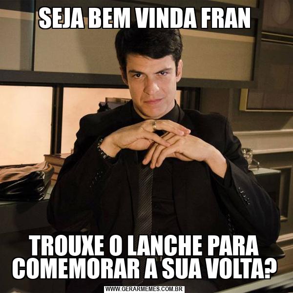 SEJA BEM VINDA FRAN TROUXE O LANCHE PARA COMEMORAR A SUA VOLTA?