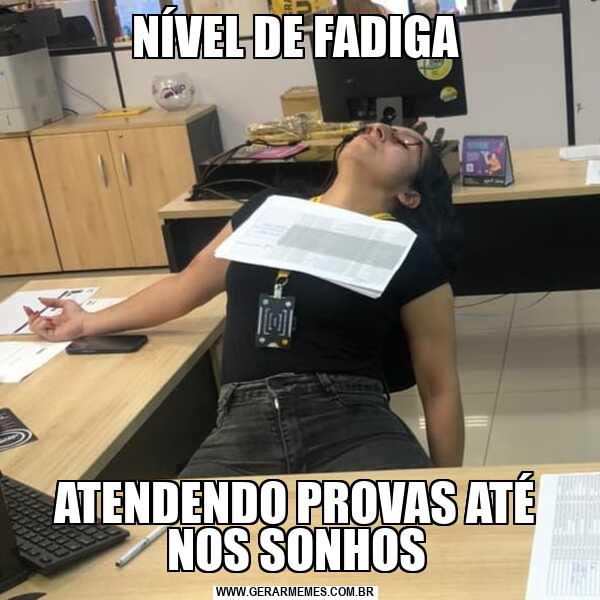 NÍVEL DE FADIGA ATENDENDO PROVAS ATÉ NOS SONHOS