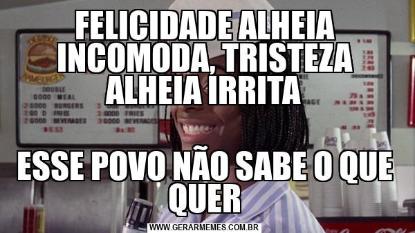 FELICIDADE ALHEIA INCOMODA, TRISTEZA ALHEIA IRRITA ESSE POVO NÃO SABE O QUE QUER