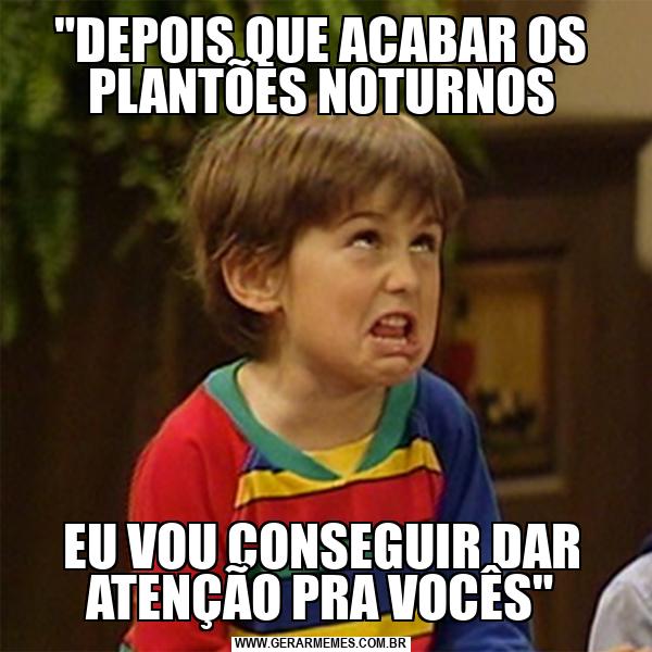 "DEPOIS QUE ACABAR OS PLANTÕES NOTURNOS EU VOU CONSEGUIR DAR ATENÇÃO PRA VOCÊS"