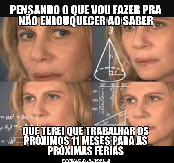 PENSANDO O QUE VOU FAZER PRA NÃO ENLOUQUECER AO SABER QUE TEREI QUE TRABALHAR OS PRÓXIMOS 11 MESES PARA AS PRÓXIMAS FÉRIAS