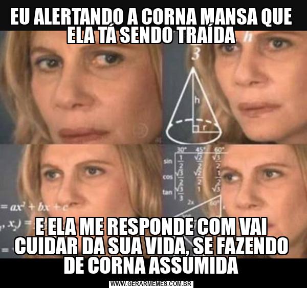 EU ALERTANDO A CORNA MANSA QUE ELA TÁ SENDO TRAÍDA E ELA ME RESPONDE COM VAI CUIDAR DA SUA VIDA, SE FAZENDO DE CORNA ASSUMIDA