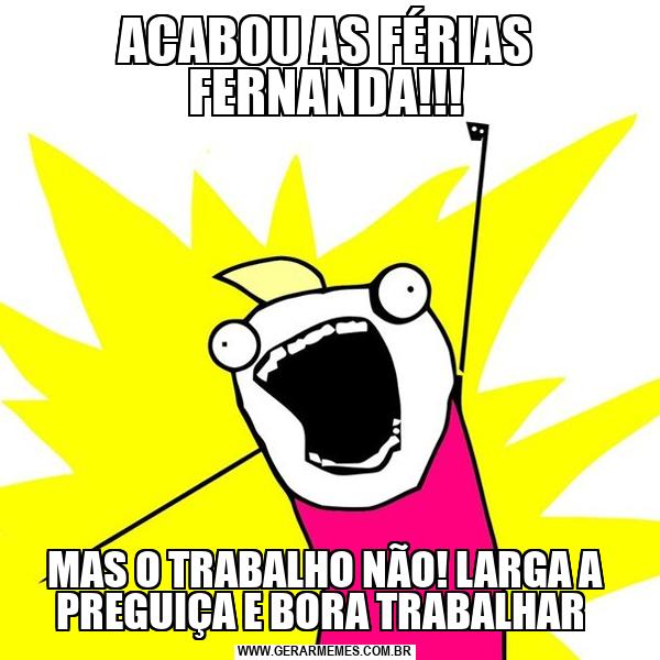 ACABOU AS FÉRIAS FERNANDA!!! MAS O TRABALHO NÃO! LARGA A PREGUIÇA E BORA TRABALHAR