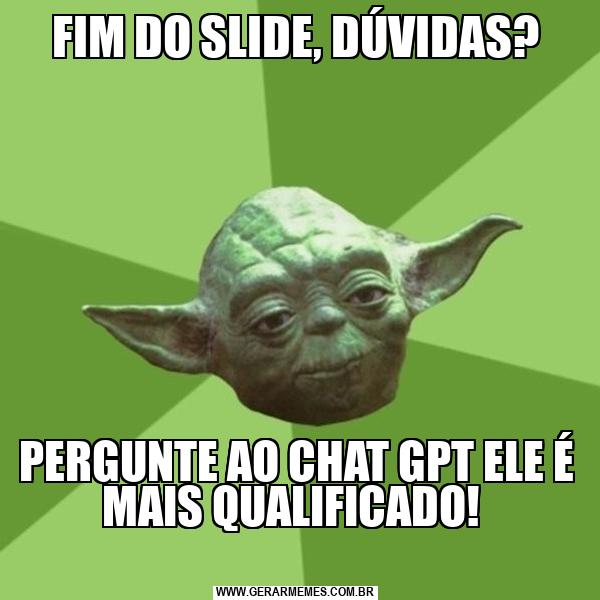 FIM DO SLIDE, DÚVIDAS? PERGUNTE AO CHAT GPT ELE É MAIS QUALIFICADO!