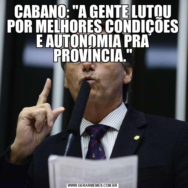 CABANO: "A GENTE LUTOU POR MELHORES CONDIÇÕES E AUTONOMIA PRA PROVÍNCIA."