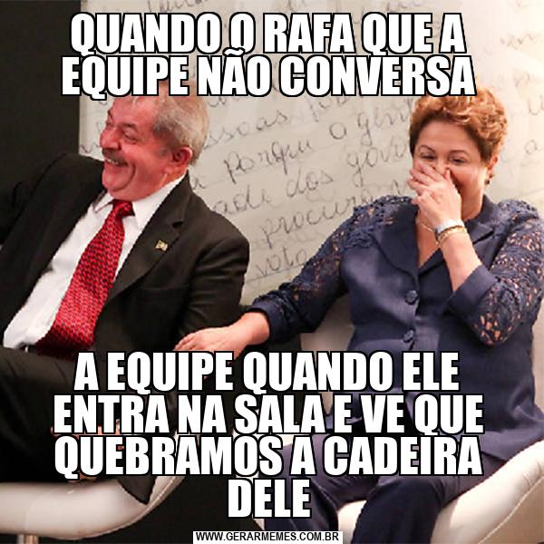 QUANDO O RAFA QUE A EQUIPE NÃO CONVERSA A EQUIPE QUANDO ELE ENTRA NA SALA E VE QUE QUEBRAMOS A CADEIRA DELE