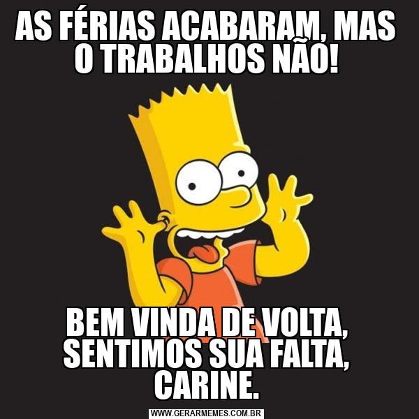 AS FÉRIAS ACABARAM, MAS O TRABALHOS NÃO! BEM VINDA DE VOLTA, SENTIMOS SUA FALTA, CARINE.