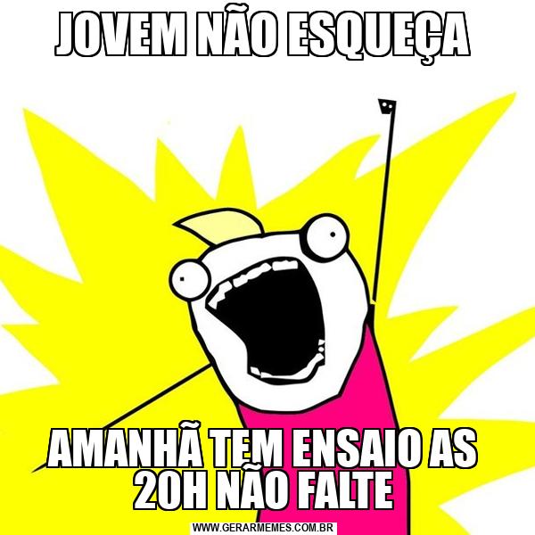 JOVEM NÃO ESQUEÇA AMANHÃ TEM ENSAIO AS 20H NÃO FALTE