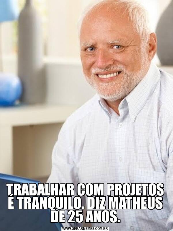 TRABALHAR COM PROJETOS É TRANQUILO. DIZ MATHEUS DE 25 ANOS.