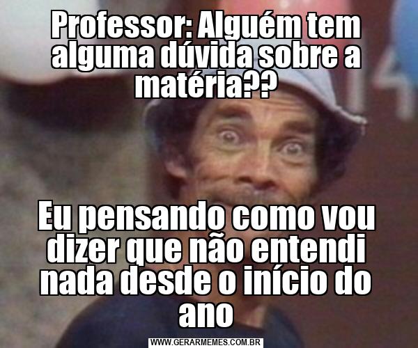 Professor: Alguém tem alguma dúvida sobre a matéria?? Eu pensando como vou dizer que não entendi nada desde o início do ano