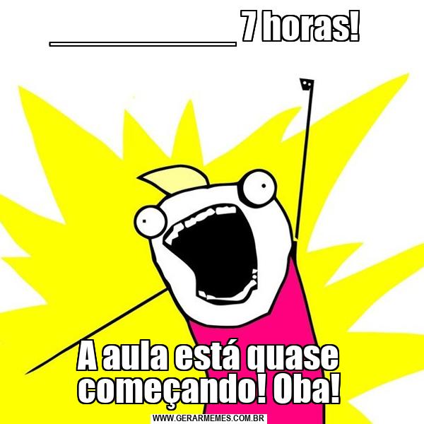 _________ 7 horas! A aula está quase começando! Oba!