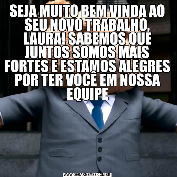 SEJA MUITO BEM VINDA AO SEU NOVO TRABALHO, LAURA! SABEMOS QUE JUNTOS SOMOS MAIS FORTES E ESTAMOS ALEGRES POR TER VOCÊ EM NOSSA EQUIPE