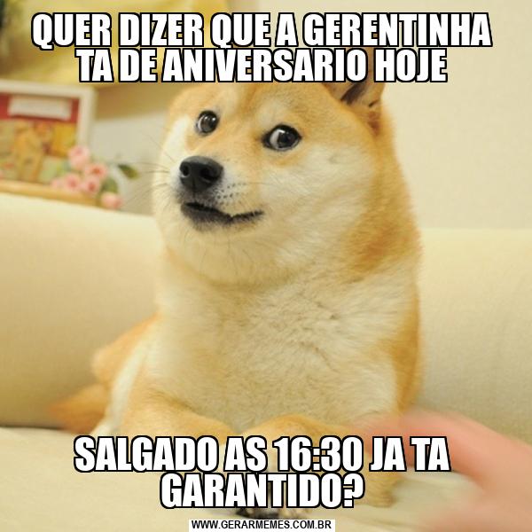 QUER DIZER QUE A GERENTINHA TA DE ANIVERSARIO HOJE SALGADO AS 16:30 JA TA GARANTIDO?