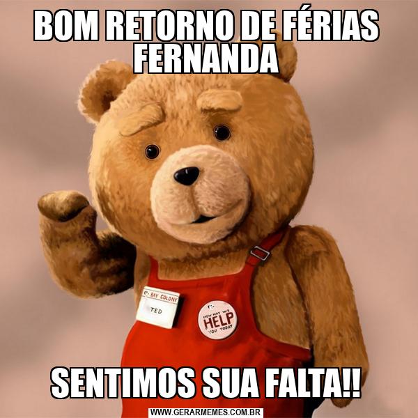 BOM RETORNO DE FÉRIAS FERNANDA SENTIMOS SUA FALTA!!