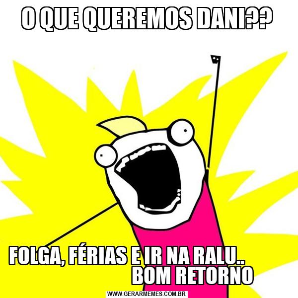 O QUE QUEREMOS DANI?? FOLGA, FÉRIAS E IR NA RALU.. BOM RETORNO