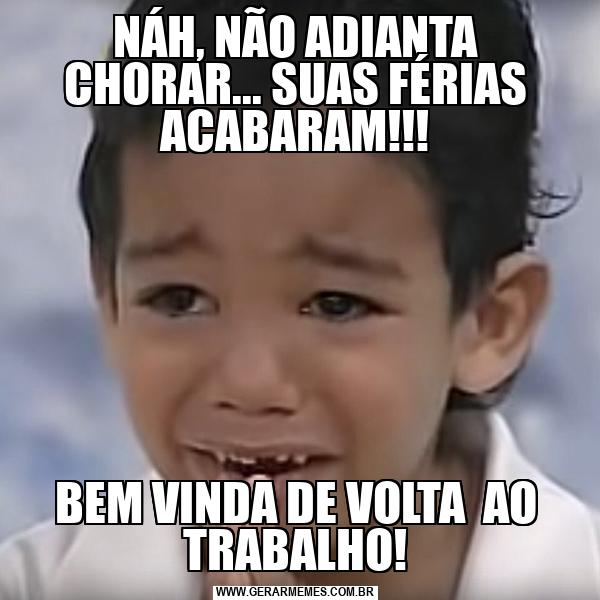 NÁH, NÃO ADIANTA CHORAR... SUAS FÉRIAS ACABARAM!!! BEM VINDA DE VOLTA AO TRABALHO!