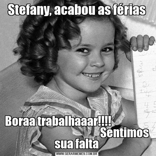 Stefany, acabou as férias Boraa trabalhaaar!!!! Sentimos sua falta