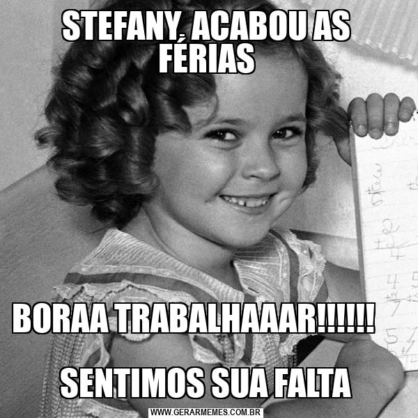 STEFANY, ACABOU AS FÉRIAS BORAA TRABALHAAAR!!!!!! SENTIMOS SUA FALTA